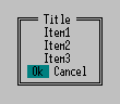 Info.Message(Info.ModuleNumber, FMSG_ALLINONE|FMSG_MB_OKCANCEL, "HelpTopic", (const char * const *)"Title\nItem1\nItem2\nItem3", 0,0);or const char *Msg="Title\nItem1\nItem2\nItem3\nOk\nCancel"; Info.Message(Info.ModuleNumber, FMSG_ALLINONE, "HelpTopic", (const char * const *)Msg, 0,2); |